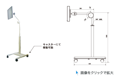 アーム形状、固定タイプ等により多数ラインナップがありますのでベッドサイドテレビとして、また工業モニター用などさまざまな用途にて活用することができます。